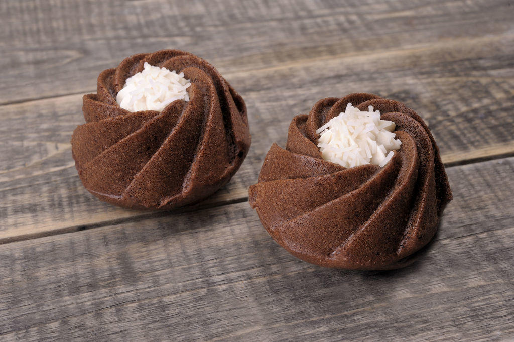 Вкусный бисквитный кекс с изюмом, декорированный сахарной пудрой.