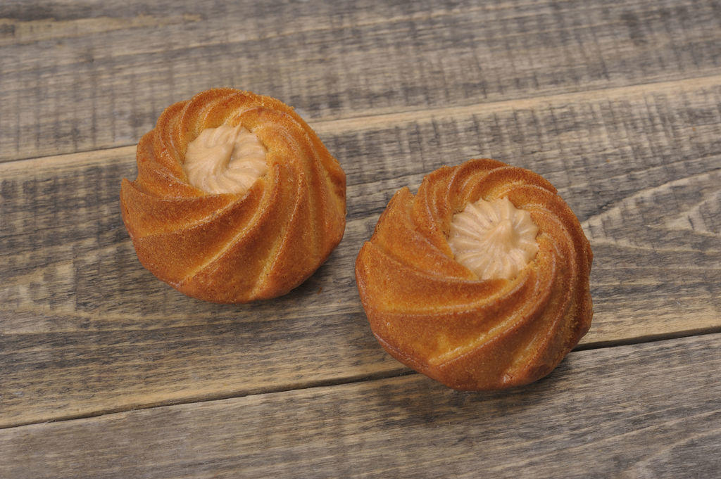 Маффины с начинкой из сливочного крема с белым шоколадным декором.