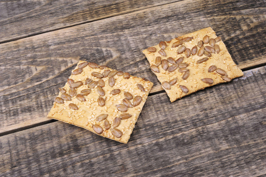 Воздушное хрустящее слоёное изделие, посыпанное кунжутом и маком.