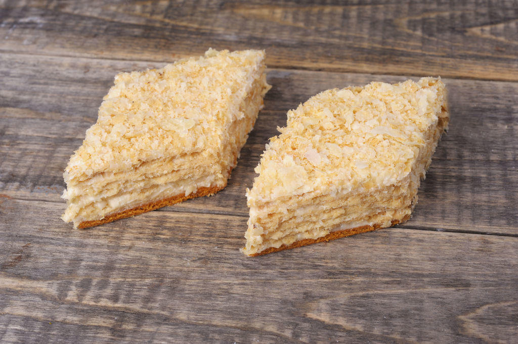 Аппетитный десерт из тонких слоёных коржей с заварным кремом и оригинальным декором.