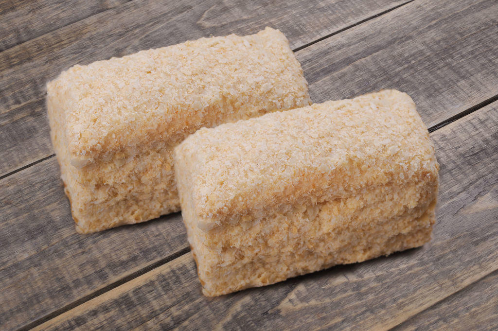 Пять тончайших коржей из слоёного теста, пропитанные заварным кремом.